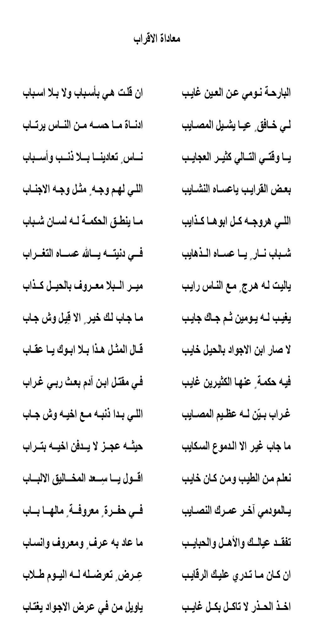 يا وقتي التالي كثير العجايب=ناس ٍ تعادينا بلا ذنب وأسباب