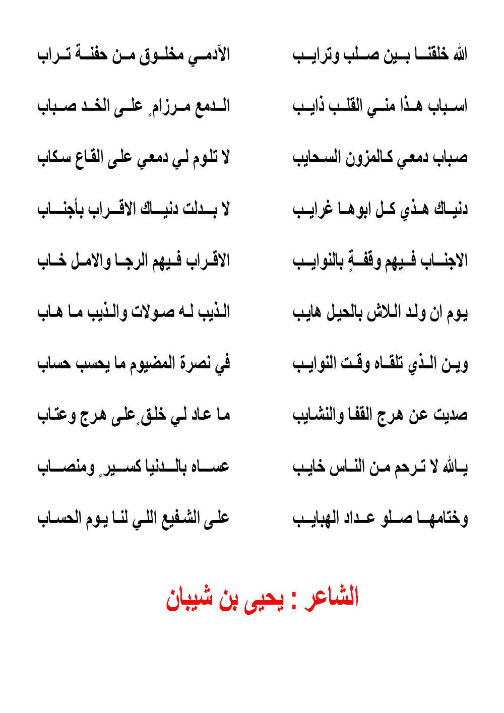 مواضيع ذات صله قصائد عامة